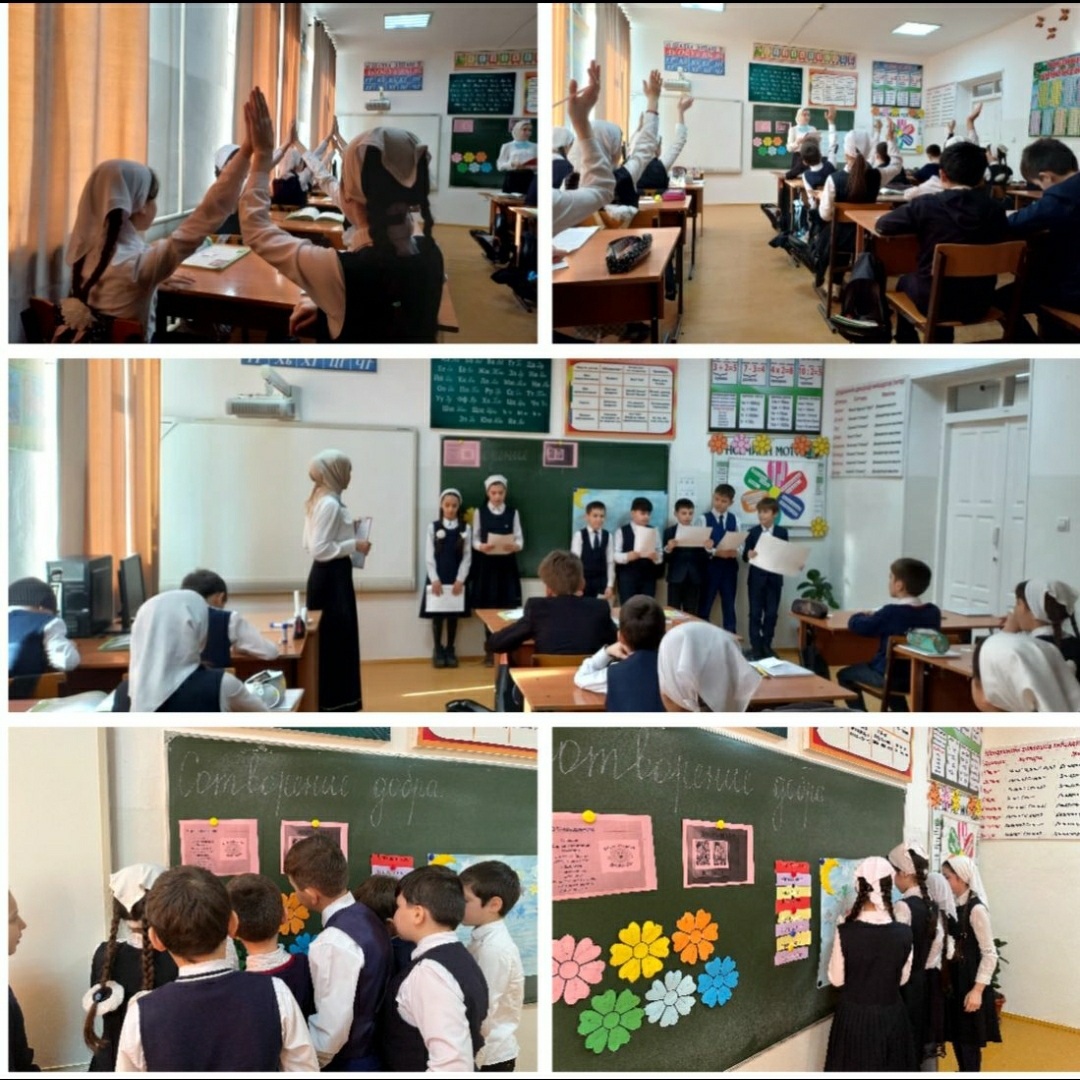 А также узнали , что и в Коране говорится о сотворении добра. Размышляя над содержанием притч, учащиеся смогли понять смысл нравственной категории «добро», сделали выводы о том, как научиться делать добро, кого можно считать добрым. Анализируя деятельность детей на уроке, хочется отметить, что они проявляли познавательную активность, были заинтересованы, внимательны.